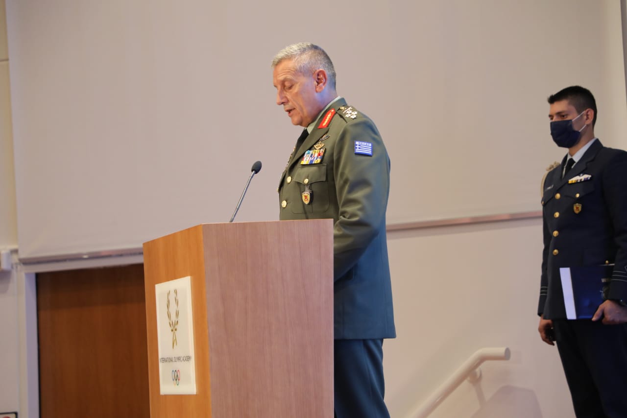 Για αυτό άλλωστε θεωρώ, ότι το ρητό «Αιέν Αριστεύειν» που διέπει τις Ένοπλες Δυνάμεις και το σύνθημα των Ολυμπιακών Αγώνων «Citius Altius Fortius» ουσιαστικά ταυτίζονται!”