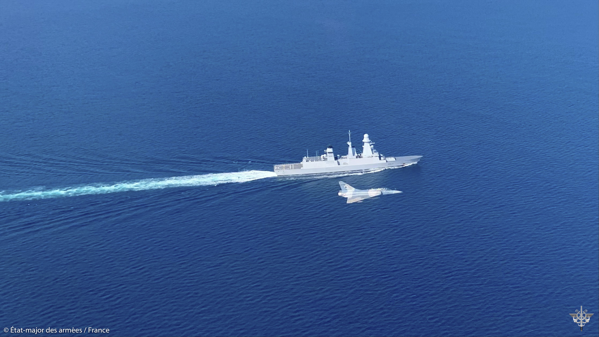 Air Defense Destroyer Forbin with French Air Force Rafales. French MoD picture